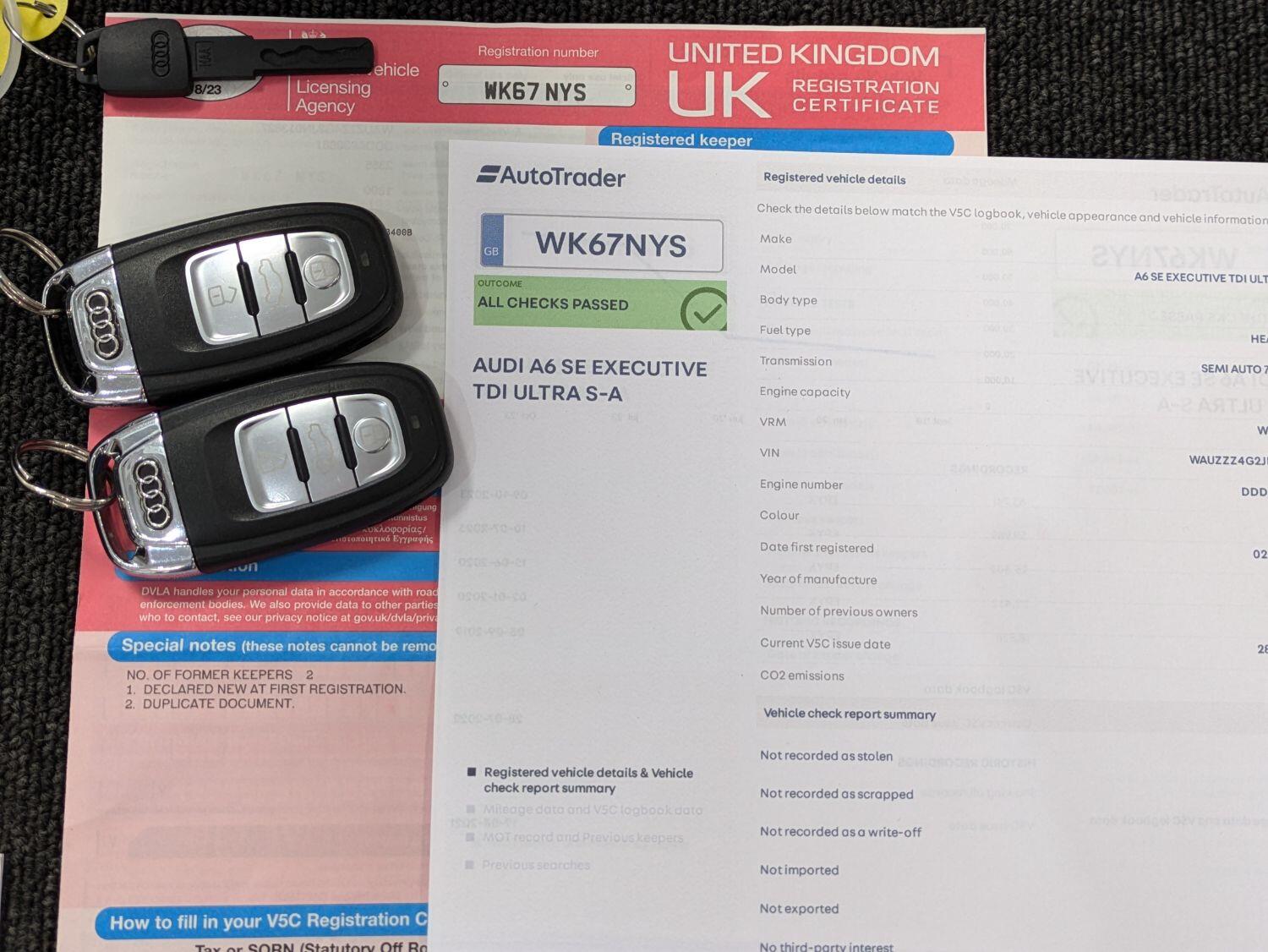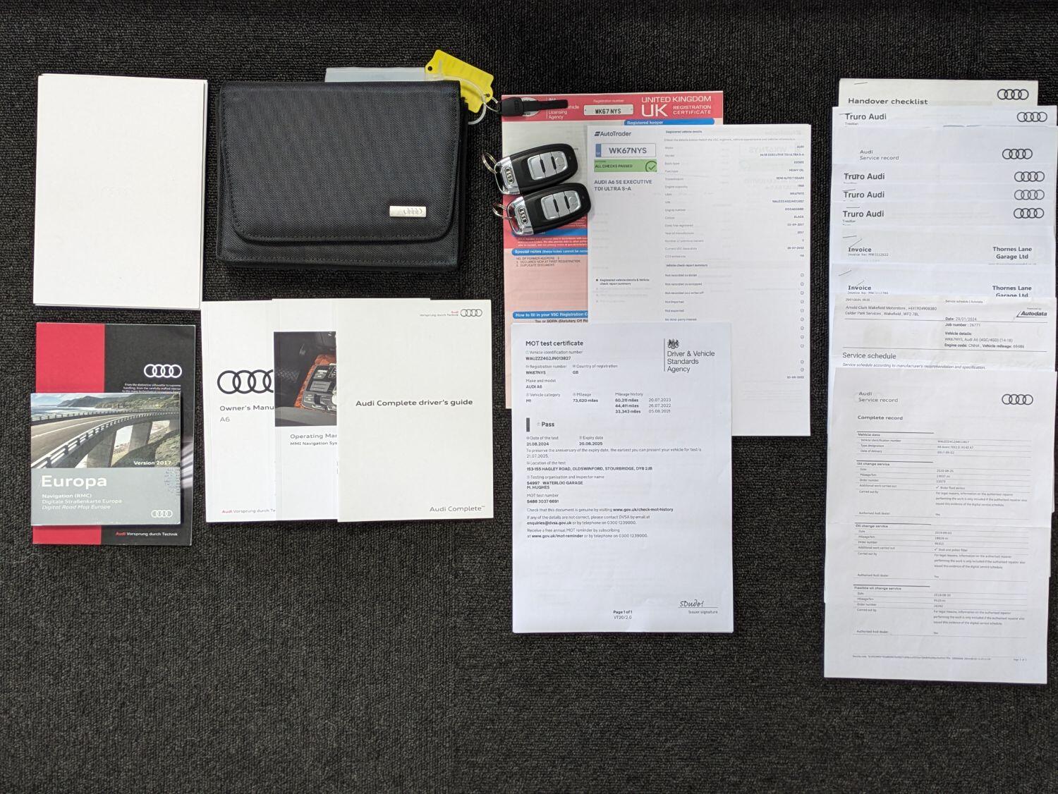 Now sold. 10/2024. A family run business established for over 18 years and can help arrange finance. A fantastic condition Audi A6 Avant automatic with a great specification, timing belt replaced in 2022 and 6 services recorded. MOT to 20/08/2025. It comes with Satellite navigation, Xenon lights, Heated leather seats, Bluetooth for mobile phone use and audio streaming. It also has front and rear parking sensors, upgraded 19" alloy wheels and a black styling pack. Power tailgate and power folding mirrors. DAB radio, CD player, 2 SD slots and AMI (Audi Music Interface). Cruise control and voice control. We are specialists in providing finance, see our website for a finance calculator and finance checker. Black and with black leather seats. 2WD. 2 remote keys and spare key, Service history book, digital printout, invoices and handbooks. Recent front brakes and recent rear brake discs and pads. Current mileage – 73634miles. WK67NYS. 6 services recorded, last done 29/01/2024 (3 at Audi and 3 at Arnold Clark). Only 3 keepers. Check our reviews on Google, Feefo and Autotrader. Free finance checker with tailored packages available. Experian checked and clear. Part exchange welcome. We are a rural dealership south of Birmingham, near Bromsgrove, a minute from junction 4 of the M5. A family run business established over 18 years. www.incentivecars.co.uk. 0121 457 7644 We can provide finance for this car. Additional specification includes Auto lights and wipers, a multifunction leather steering wheel with paddle shift. Auto hold. Boot liner. Sat nav, air conditioning. Split folding rear seats. Multiple airbags, ISOfix, passenger airbag deactivation. Drivers information system. Arm rests. Roof rails.