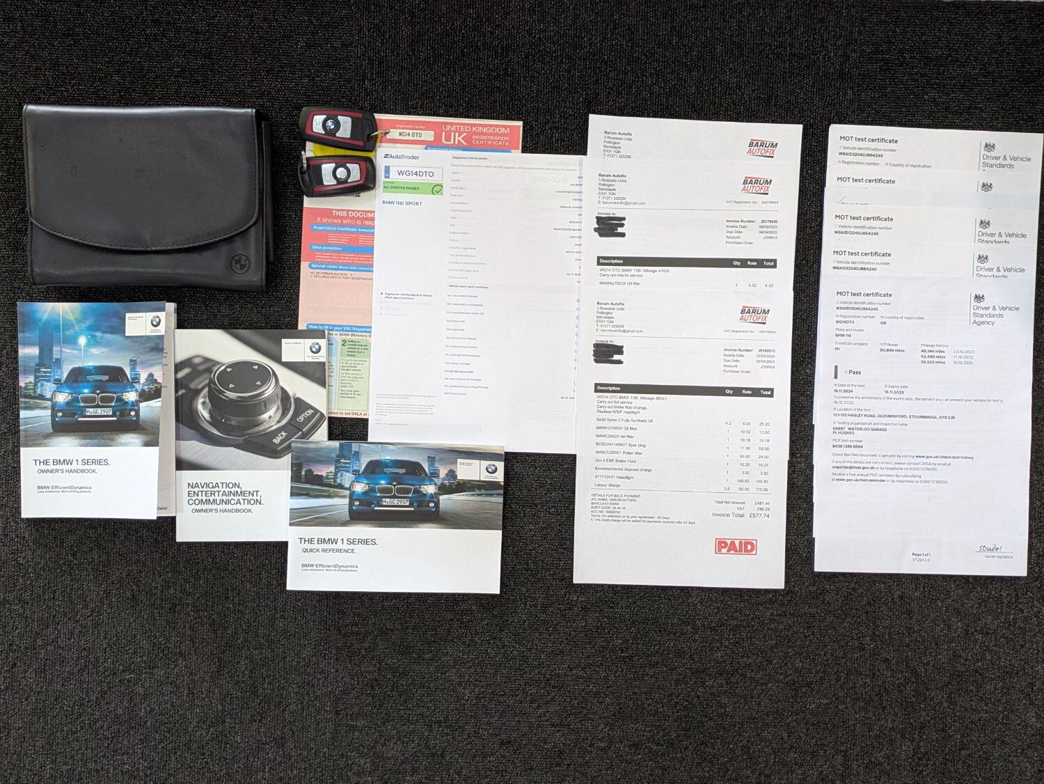 Now sold. 12/2024. A family run business established for over 18 years and can help arrange finance. A fantastic condition 1 owner BMW 116i Sport with 8 service visits recorded, last service at 48341m. MOT to 18/11/2025. It comes with Bluetooth for mobile phone use. It also has DAB radio, CD player, aux and USB inputs. 17" freshly refurbished alloy wheels fitted with 4 Bridgestone tyres. Keyless start. Auto lights / wipers. We are specialists in providing finance, see our website for a finance calculator and finance checker. Bluewater metallic and black interior. 2WD. 2 remote keys, Service history on ECU, invoices and handbooks. Current mileage – 50907 miles. WG14DTO. Only 1 keeper. Check our reviews on Google, Feefo and Autotrader. Free finance checker with tailored packages available. Experian checked and clear. Part exchange welcome. We are a rural dealership south of Birmingham, near Bromsgrove, a minute from junction 4 of the m5. A family run business established over 18 years. www.incentivecars.co.uk. 0121 457 7644 We can provide finance for this car. Additional specification includes a multifunction leather steering wheel. Air conditioning. Split folding rear seats. Multiple airbags, ISOfix, passenger airbag deactivation. Drivers information system. Arm rest. Speed limiter.