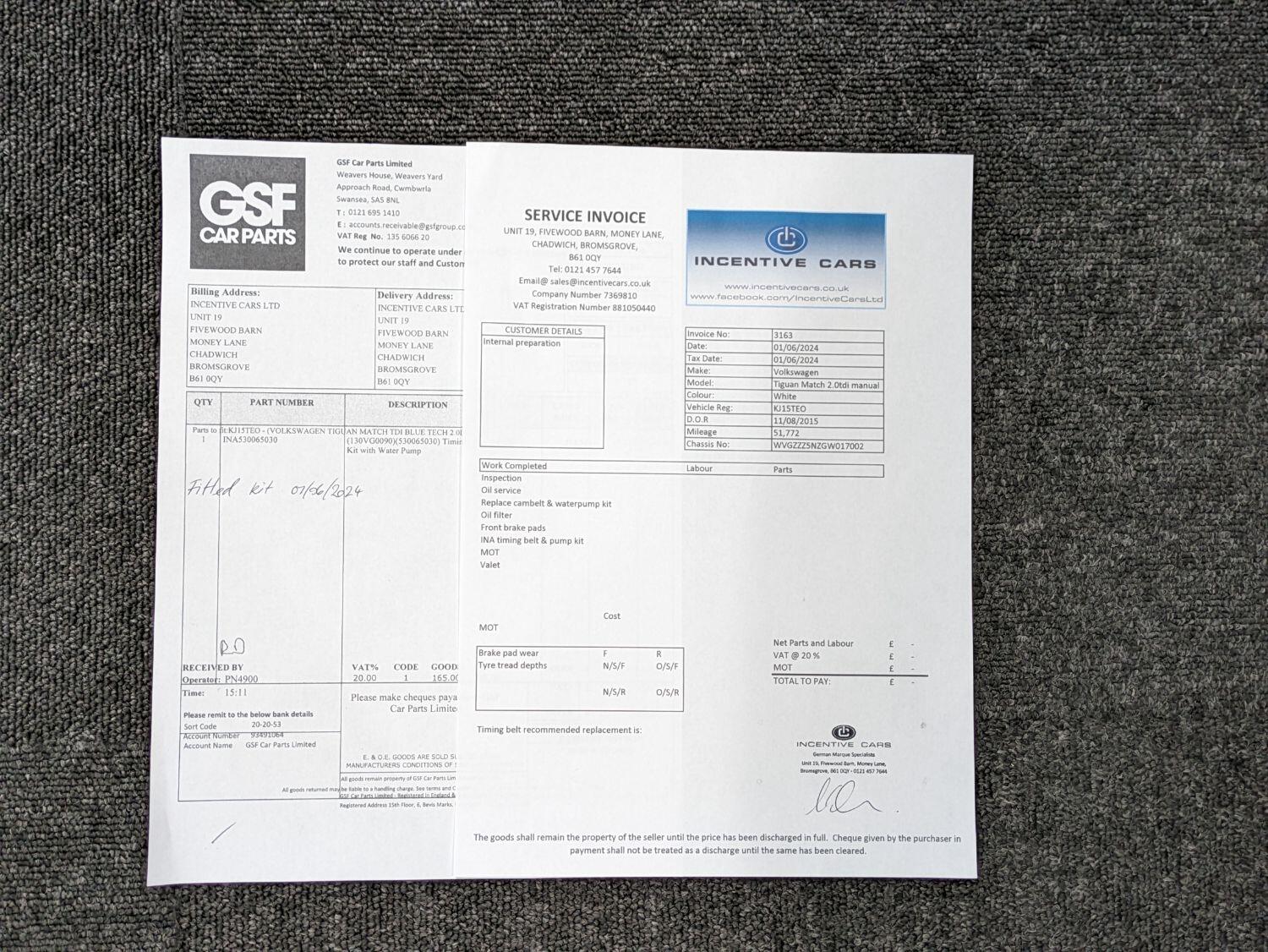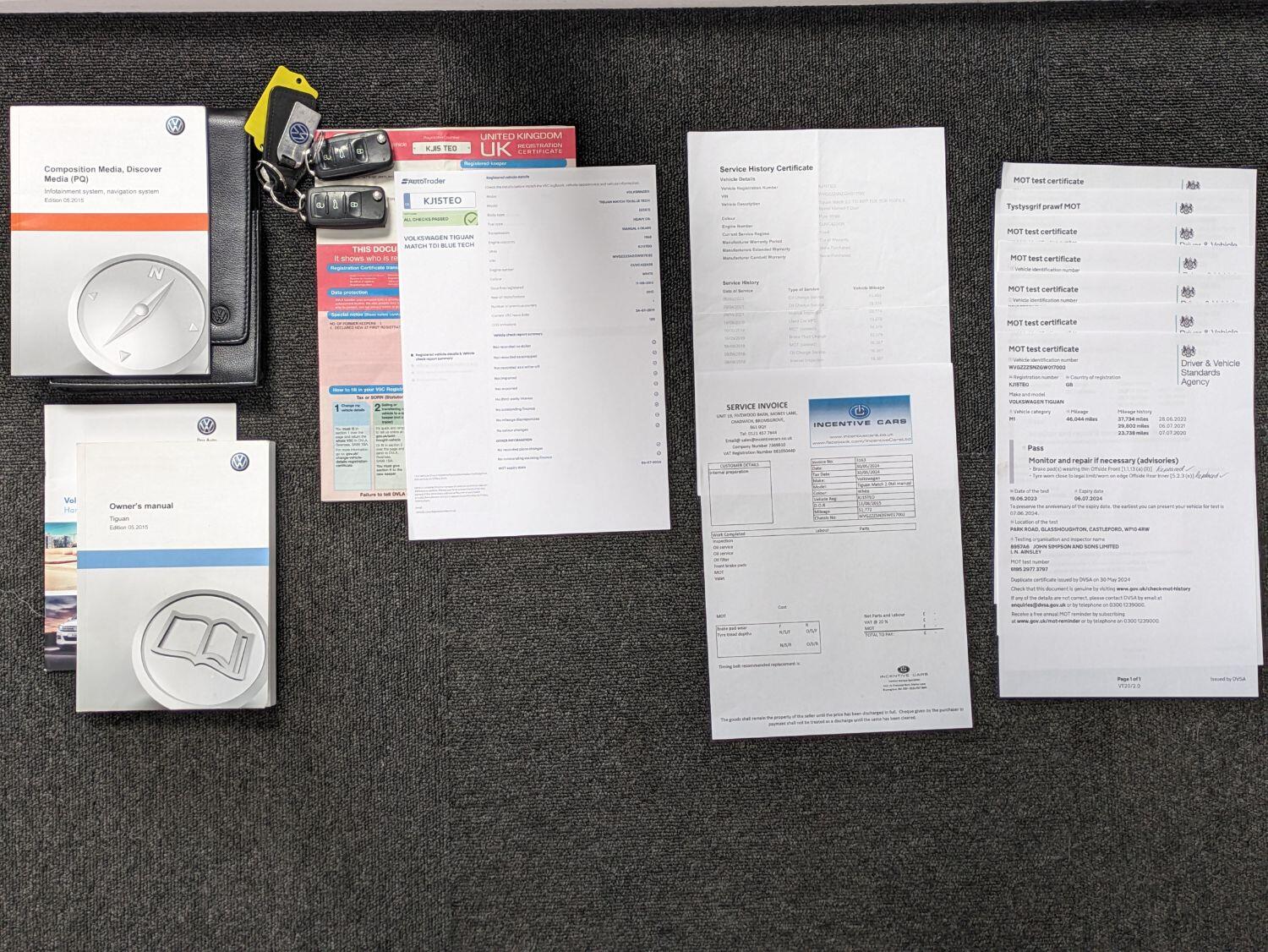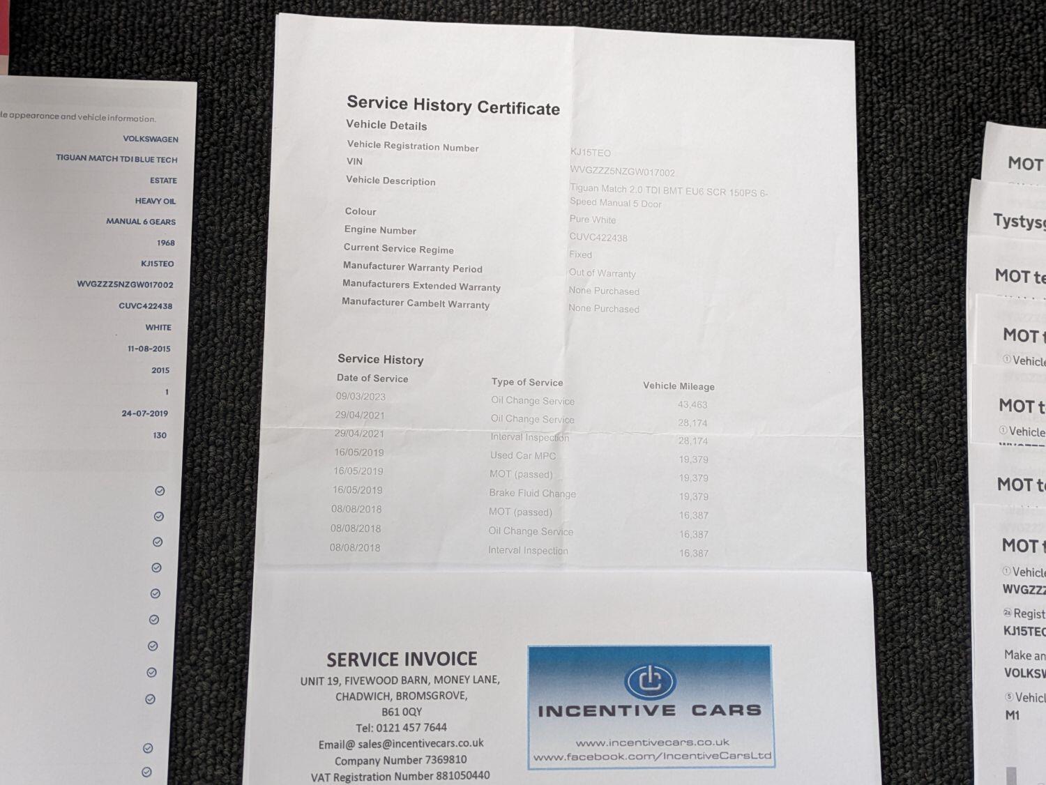 Now sold. 06/2024. A family run business established for over 18 years and can help arrange finance. A great condition 2 owner VW Tiguan Match with a great specification and 5 services recorded, just serviced including a timing belt kit change. MOT to 06/07/2025. It comes with Satellite navigation, Bluetooth for mobile phone use and audio streaming. It also has park pilot front and rear parking sensors and park assist. Privacy glass. DAB radio, CD player, SD slots, aux and USB inputs. 17" alloy wheels. Towbar. We are specialists in providing finance, see our website for a finance calculator and finance checker. Pure white and black alcantara. 2WD. 2 remote keys, Service history printout and handbooks. Current mileage – 51778 miles. KJ15TEO. 5 services, last done 01/06/2024. New front brake pads fitted. Only 2 keepers (last keeper for 5 years). Check our reviews on Google, Feefo and Autotrader. Free finance checker with tailored packages available. Experian checked and clear. Part exchange welcome. We are a rural dealership south of Birmingham, near Bromsgrove, a minute from junction 4 of the m5. A family run business established over 18 years. www.incentivecars.co.uk. 0121 457 7644 We can provide finance for this car. Additional specification includes Auto lights and wipers, a multifunction leather steering wheel. sat nav, air conditioning. Split folding rear seats. Multiple airbags, ISOfix, passenger airbag deactivation. Drivers information system. Arm rests.